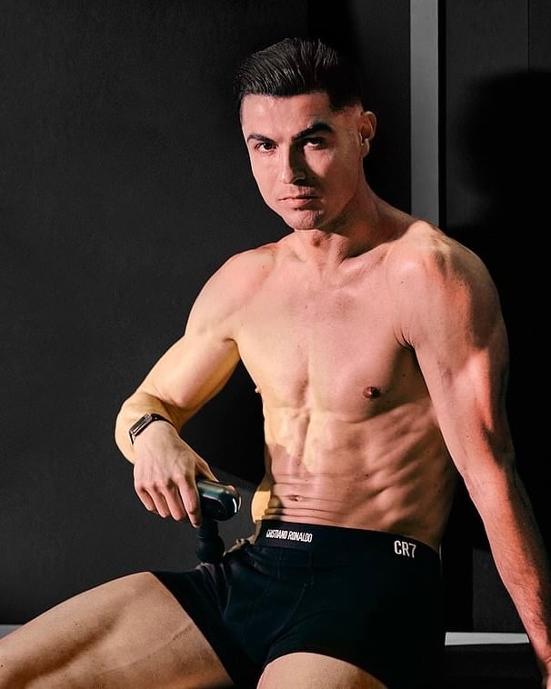 Ronaldo demonstrated the results of his regime in an Instagram post to his 671 million followers, showing off his ripped physique whilst promoting his recovery brand AVACR7. Holding what appears to be a massage gun from the brand, he posed in black branded boxer shorts with his abs firmly on display.